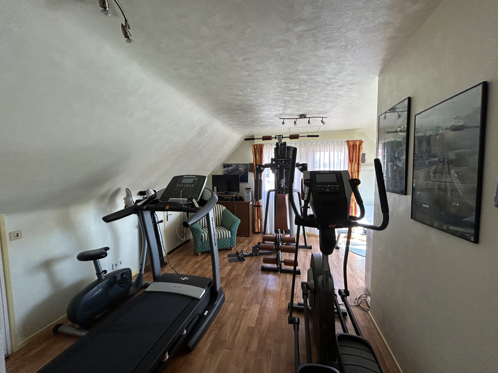 L’escalier situé dans le hall vous conduit à un grand palier desservant cinq chambres dont une chambre parentale, une salle de bain, un deuxième WC indépendant et une salle de sport. Cette dernière dispose d’un escalier secondaire permettant un accès direct au garage.