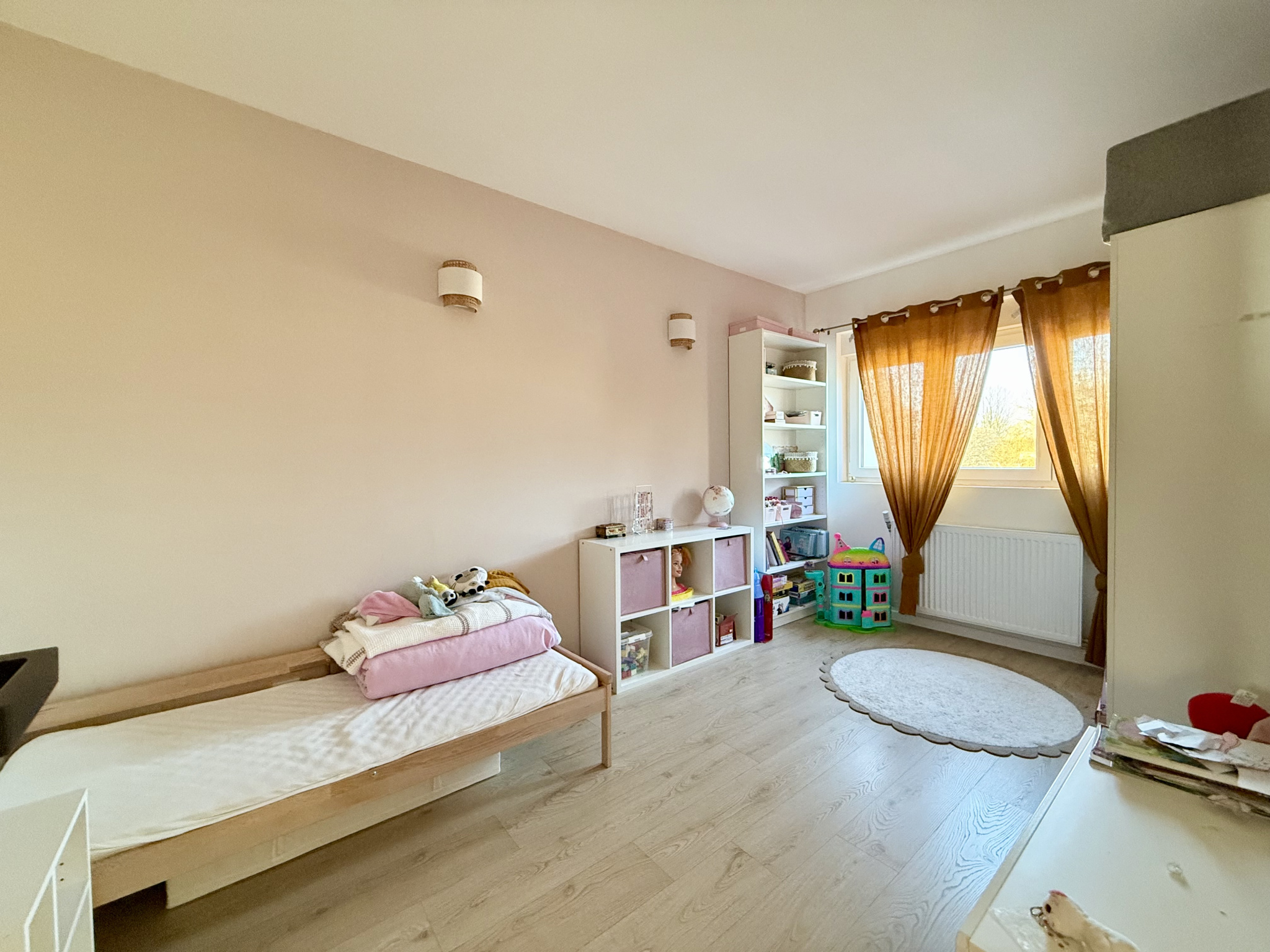 À l’étage, la maison dispose d’une jolie salle de bains et de trois belles chambres, idéales pour une famille.