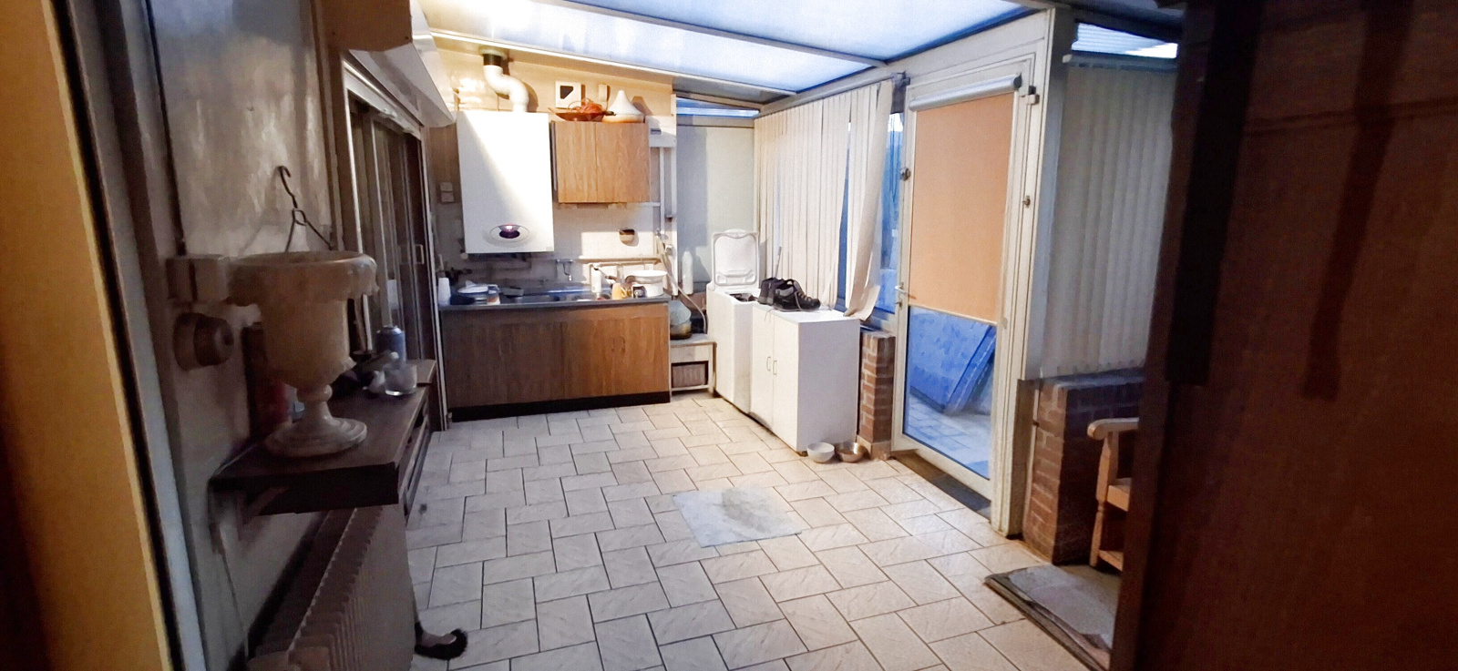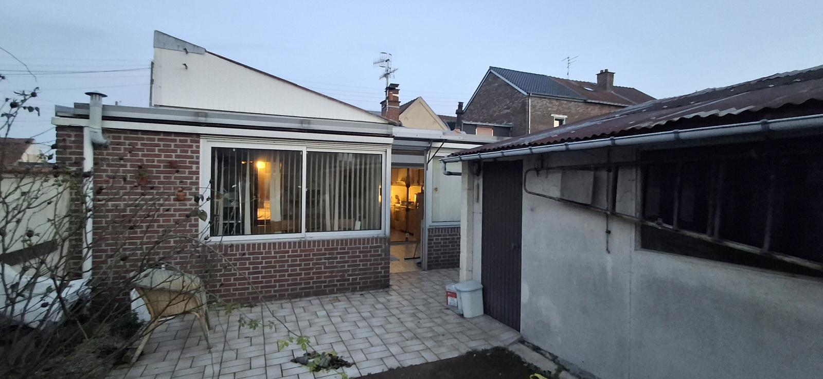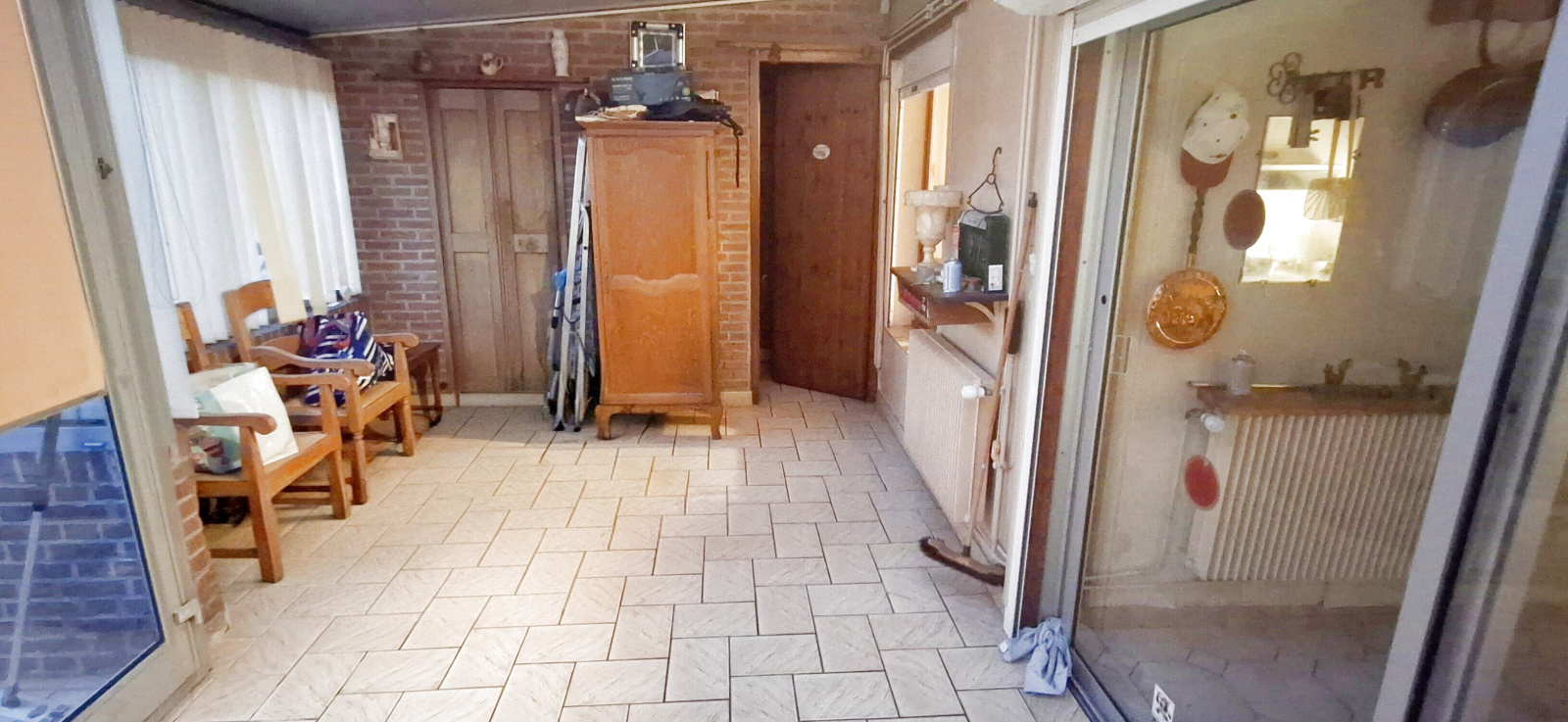 Éleu-dit-Leauwette (62300)Plain pied individuel à rénover sur la commune de Len, passage piétons, moto ou cycle sur le côté.