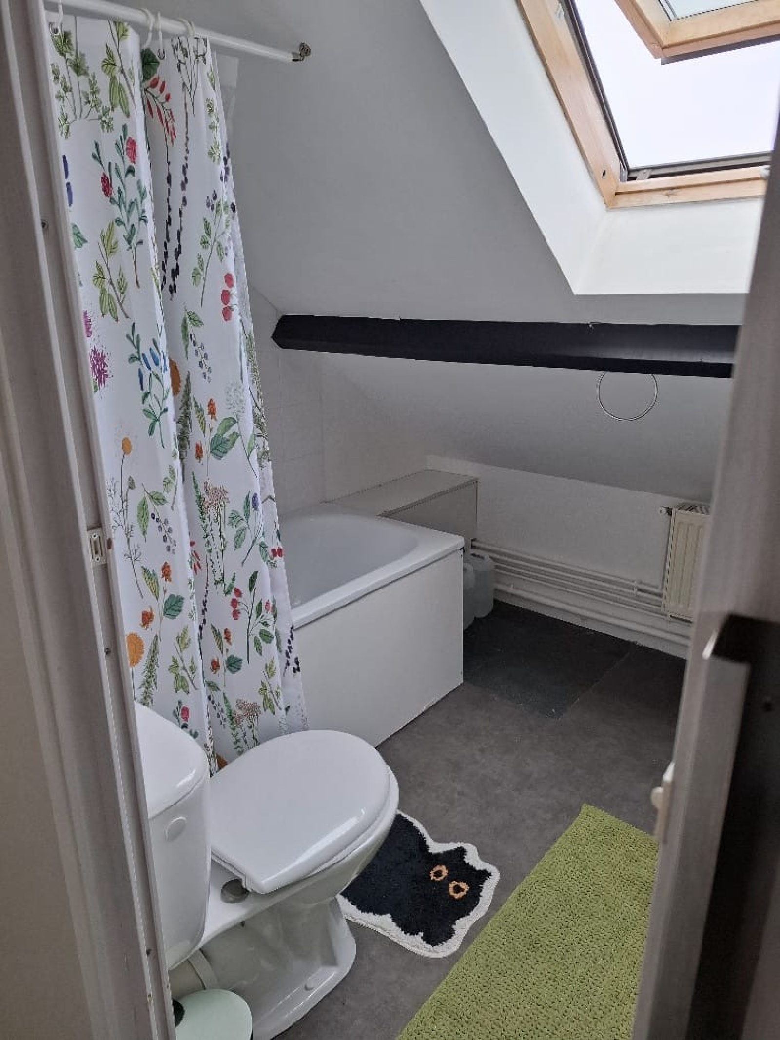 D'une salle d'eau avec baignoire, vasque, meuble sous vasque, WC.
