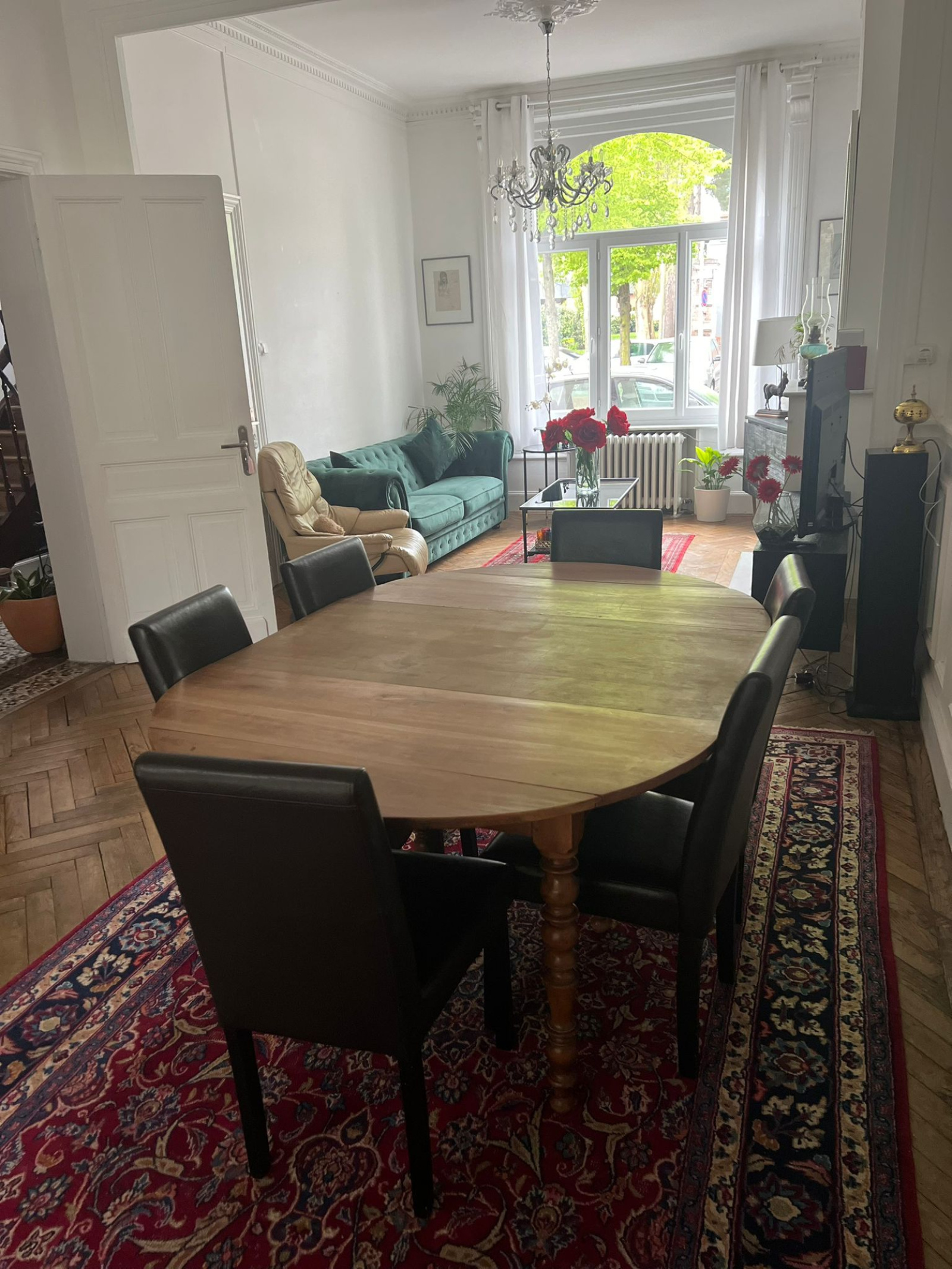 Douai (59500)EXCEPTIONNEL ! En centre ville très belle maison Bourgeoise au cachet préservé. Au rez de chaussée, un très beau hall d'entrée vous accueille, un triple séjour, une cuisine équipée, un wc, un bureau et un garage . Au 1er étage, découvrez un très beau palier, quatre grandes chambres et une salle de bain avec wc. Au 2ème étage, une magnifique suite parentale de 80 m² avec dressing, salle de bain avec baignoire, douche et wc viennent compléter ce bien. Pour finir, un très beau jardin et une belle cave avec pompe à chaleur et ballon thermodynamique finira de vous séduire.