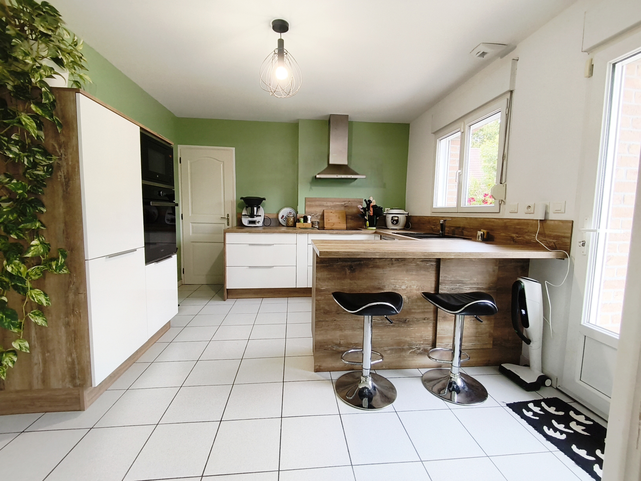 Hénin-Beaumont (62110)Exclusivité, venez découvrir ce magnifique semi plain-pied individuel en brique, dans un secteur calme comprenant : une spacieuse entrée avec mezzanine, un très beau et chaleureux salon-séjour avec feu à bois, une cuisine equipée, un cellier, une salle de bain, une chambre, et un wc au rez de chaussée. L'étage se compose de 4 belles chambres et d'une salle de bain avec douche, baignoire et wc. Un très grand sous sol de plus de 150 m² pouvant accueillir 5 voitures et une terrasse surplombant le jardin finira de vous séduire. Une demeure familiale dans un havre de paix.