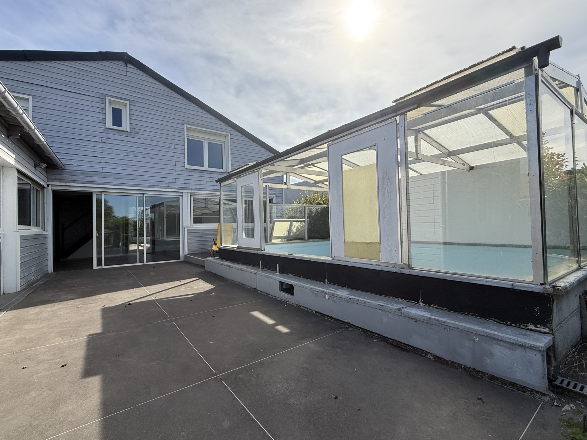 Un hangar de plus de 200m², une terrasse, un jardin, une piscine couverte de polus de 18m², un vivier.